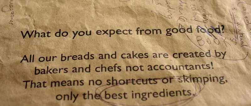 K: It was a Pandoro bread paper bag (unavoidable endorsement) and it had some interesting words on it already. See below.